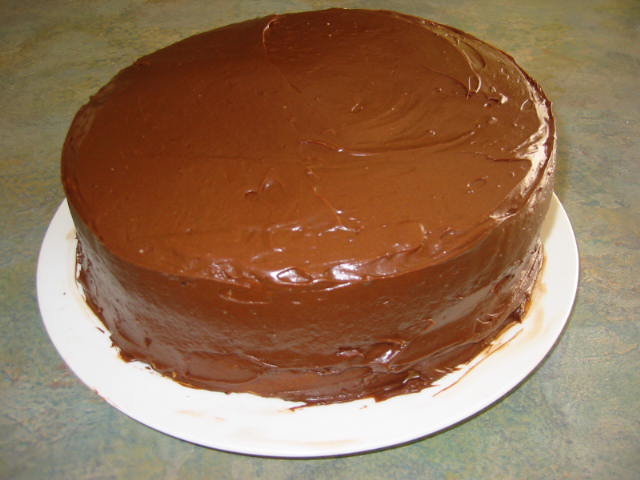 The lovely children are a chip off the old block. May I now present the latest culinary endeavors of Lovely Daughter and BoyHead. BoyHead has mastered the age-old family recipe of "Donkey Fazoo". A rich, hearty ground donkey beef, tomato and onion mixture combined with kidney beans and elbows. Top with cheese and heat til ya just can't stand it no more. Yummers! Oh yes, and a very nice asparagus topped with ranch dressing dish. Now comes L.D. with the piece de resistance of this Epicurean trifecta.Lovely Daughter has created a splendidly moist and delicious yellow cake on which she has generously sculpted a smooth layer of creamy thick chocolate frosting. It ain't Ribeye, but it's good eatin'.