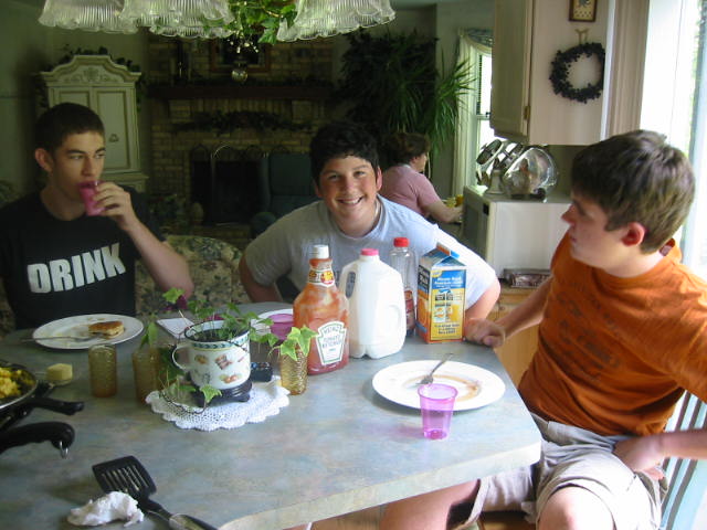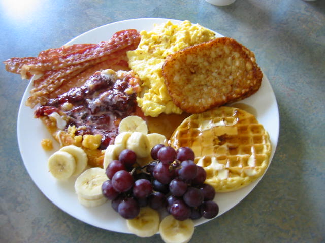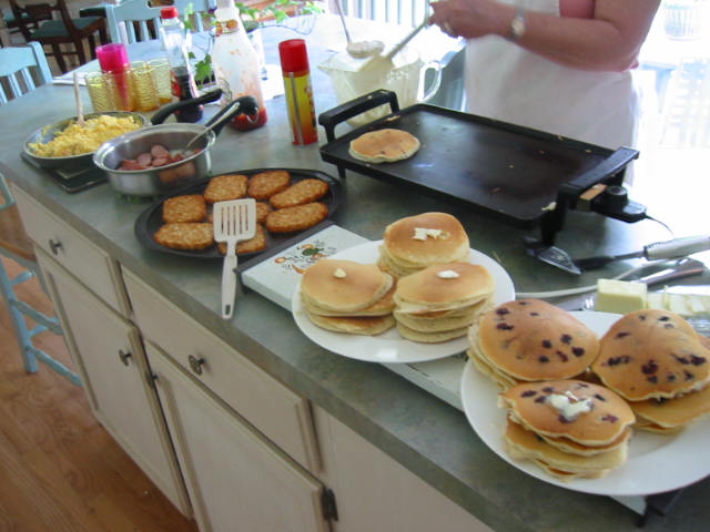 And what a lovely breakfast it was: Blueberry pancakes, regular pancakes, hash browns, sausage and cheese eggs.