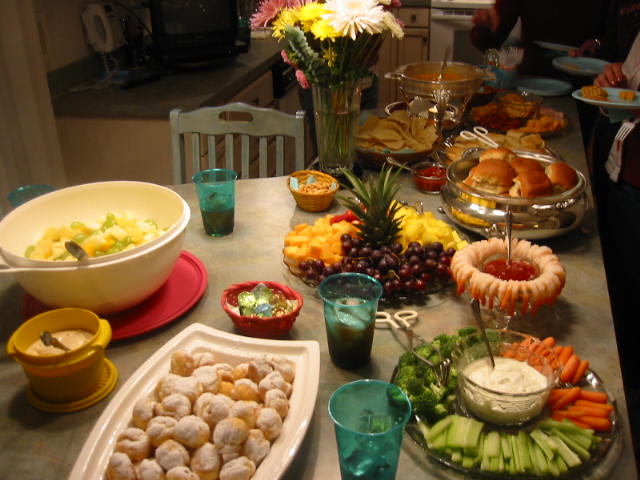 Last week we had a few friends over for some vittles and some games, so Lovely Wife conjured up a potpourri of palatable appetizers: Fruit salad, fruit tray, vegetables with dip, cream puffs, shrimp cocktail, BBQ sandwiches, chips and queso, sausage in a roll, and a meat and cheese tray. It was thoroughly good. Afterwards, we played Taboo and the Men beat both the Ladies and the Kids. Needless to say, a good time was had by all.