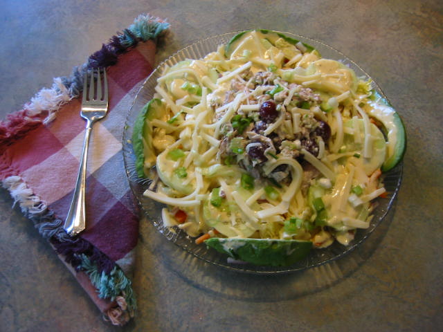 Lovely Wife has been doing her utmost to make my domestic working experience an enjoyable one. Mostly, she feeds me. One of the standout meals this week was the "Martin Luther Breakfast" on Monday. It was fit for a King. Orange slices, Cheese eggs, Ham and Biscuits 'n gravy. After a breakfast like that I'm fully fueled for a flurry of frenetic activity. Or, a nap. Around mid week, I was rewarded with a splendid salad for lunch. Not just any salad, this one featured a ring of lettuce, avacados, onions, cucumbers, and swiss cheese with a home-made honey mustard dressing. In the center was a mound of hand crafted chicken salad with celery, grapes and pecans. Very fru-fru.