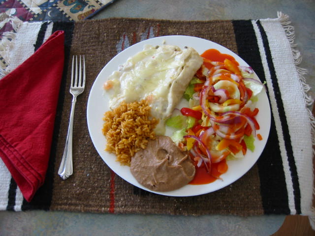 There have been quite a few dinners on this page over the past two years. A few ribeyes. Lots of beef. Very little lunch. Lunch has never really been much of an issue for me--especially during the week. Sure, occasionally I'd make some mondo sub sandwiches on a Saturday, but during the week it's been just leftovers. Or The Machine at work which is aptly named The Wheel of Death. Some days I'd skip lunch altogether--no big deal. Those days are gone now. I'm working from home and have rediscovered the joy of lunch. I posted a picture last week of a wonderful lunch the L.W. prepared. She has outdone herself again this week with a lovely Mexican dish--the name of which escapes me. Viva la workingfromhome!
