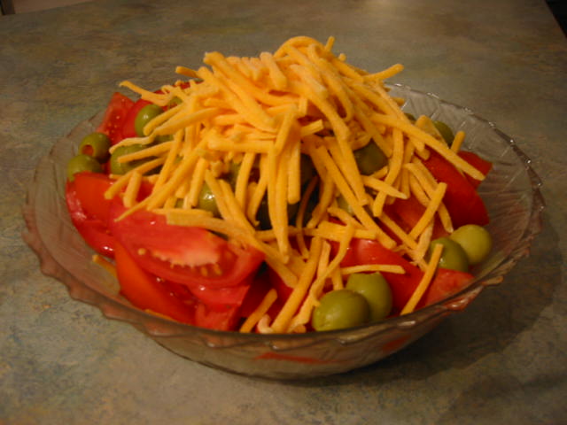You thought I had forgotten about the poor Kitchen page--didn't you. Well, it has been a while, but I was saving up for something breathtaking--literally. Pictured to your right is the DragonBreath Salad. A little something I picked up whilst cycling through the Dolomites. It features just a wee bit of lettuce, a generous helping of diced red onions (I'd say one medium onion), green olives, as many fresh homegrown tomatoes as will fit (cut in wedges, of course), red wine vinaigrette dressing and topped with shredded sharp (yes sharp) cheddar cheese. Eat to your heart's content, but don't go near the loved ones for 15 hours (and a good flossing).