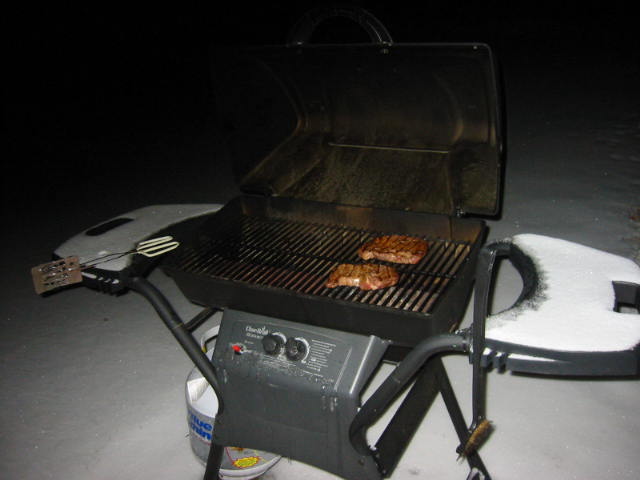 This post is all about seasons. Seasons, seasonings, etc. After all, it's seasons that make the world go round--or perhaps vice versa. At any rate, in order to make the perfect ribeye, every seasoned professional knows that seasonings are most important. I generally go with Lea & Perrins Worchestershire and Lawry's Seasoned Salt. To my way of thinking it's the perfect flavor combination. Another important element: let the meat sit about for roughly 1/2 hour so that it approaches room temperature before throwing it on the grill. I've found that it cooks up much better this way. Now that you have the right seasonings, don't think that you have to wait for the right season. It's always the right season for cooking ribeyes out on the grill. Don't let a little cold and wind and sleet and snow dissuade you. However, with temperatures below 15F, I suggest that you cook with the grill lid closed. Enjoy!