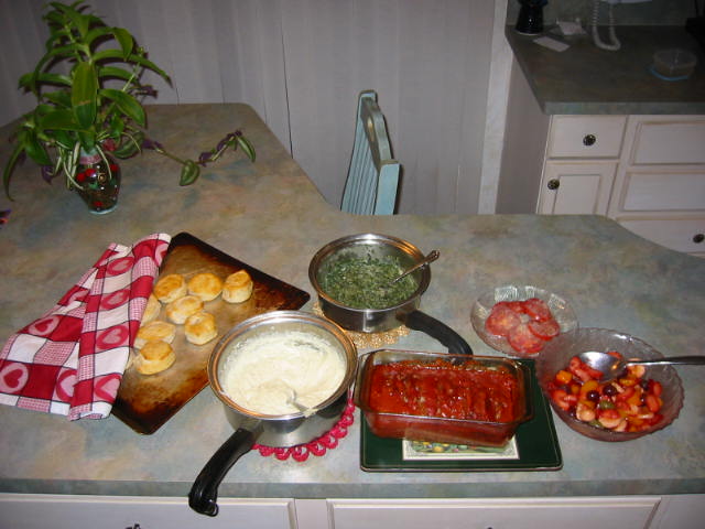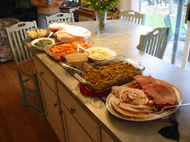 Oh yes, on this day we have much to be thankful for. On this page, however, we are free to express our thankfulness for food. On the menu: Turkey, ham, dressing, mashed potatoes and gravy, sweet potatoes, creamed spinach, rolls, apples Waldorf, and jello salad. And for desert: Pecan pie, Pumpkin pie, and buttermilk pie. And yea, we are very thankful.