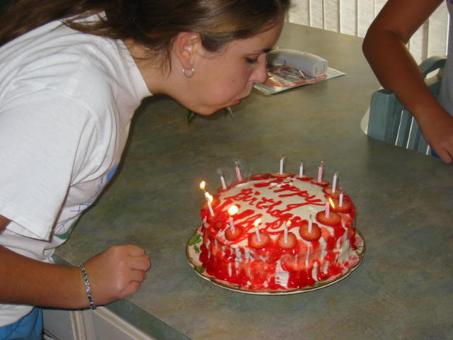 In our family, we have a tradition that states (in the ancient scrolls): "Whosoevereth may haveth a day of birth shall also picketh thine dinner menu". In accordance with tradition, Lovely Daughter has picked the menu (from left to right): Biscuits, Mashed Potatoes, Creamed Spinach, Meat Loaf, Homegrown Tomatoes with some special funky sauce, Fruit Salad. For desert: Birthday Cake. And yes, LD got her wish.
