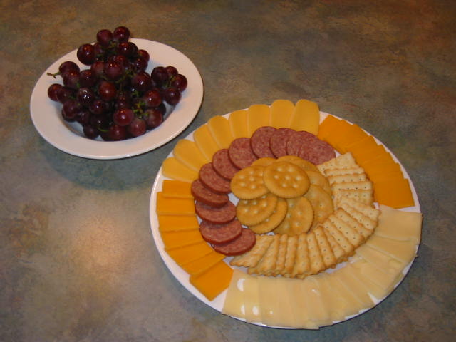 Well, I know it's been a while since I've fed you people--you must be getting hungry. I've been fairly busy maintaining other pages on the site and eating rather mundane food. Since several people were kind enough to give me gifts of food for Christmas, I will share some of it with you. Enjoy the summer sausage, smoked gouda, baby swiss, sharp cheddar, stoned wheat and other assorted crackers. Eat, eat! You're looking so thin.