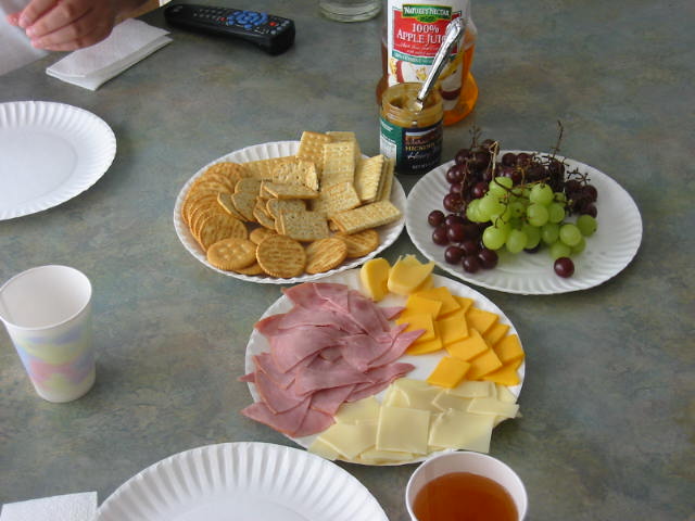 Ok, ok. Another snacktime. Yes, again it's cheese and crackers. But, this time there are also pictures of Scotty and the Homeys. I think it's quite clear by now that I am a father who truly cares about the nutritional well-being of my brood. That is why I take the time and effort to make such delicious and nutritious snacks.