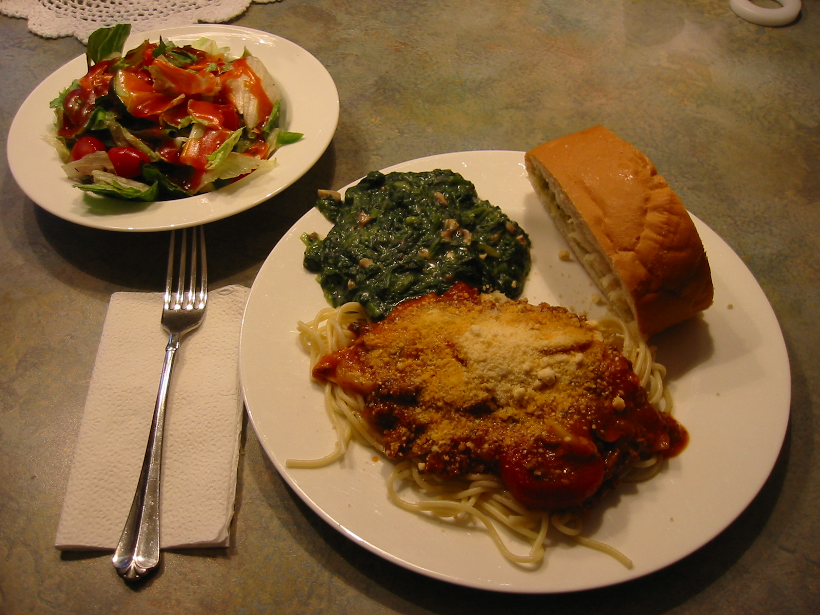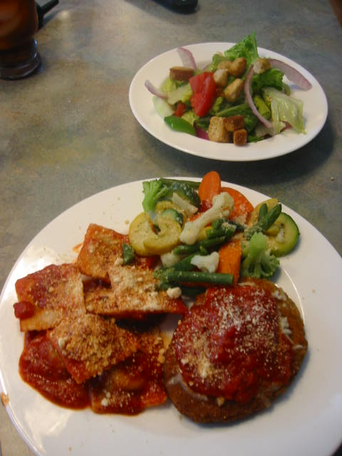 Sometimes--not often, but sometimes--I get in the mood for Italian food. So, tonight I cooked me up a little veal, some ravioli, veggies and a lovely Italian salad. I thought you'd want to know.