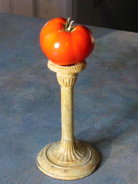 I know it's been a long time since I updated the food page. I've been enjoying many a Ribeye, but I know it gets redundant to show the perfectly grilled steak on the grill (not that I ever tire of eating a beautiful Ribeye). I've actually been imagining a magazine entitled "SteakBoy" featuring provacative poses of various cuts of meat. Again my Lovely Wife chastises me. Anyway, observe the picture of the perfectly prepared (by L.W.) pork roast. I only wish you could taste the the succulent sauce. Also admire my first harvested tomato. It's approximately one month late (due to the long cool, wet spring) not perfect, but L.W. puts it in the best possible light.