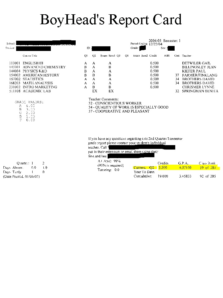 Think of it. You're 16, a Junior in High School. What is it that you want most of all? Girls? Cars? Money? Yeah, all those things, but mostly you want independence. To be your own man, out from under the yoke of M & D (well, it's not like we actually hitched a plow to him). A few months ago, we promised B.H. that if he did well in school that he could get a job and a car (in that order). He has certainly risen to the challenge. His GPA for the second quarter was 4.07 (he's taking advanced classes that give him the opportunity for more than a 4.0). Not only that, but the teacher comments are all positive. We're very proud. And so, we have granted his request: He may go forth and get a job and a car (in that order). That's where reality begins to sink in. Of course the idea of having a job is great, but the actual task of getting a job--especially a first job--is a little daunting. All the uncertainty of what to say and what to do. Other than school (which is generally mastered at a very young age) the first real foray out in the world where one is completely free to fail or succeed on his own merits. Of course we give guidance, "be polite and a little outgoing", "look him in the eye and speak plainly", "wear a nice shirt", "smile", but in the end, it's all up to the BoyHead. Be careful what you wish for young BoyHead.