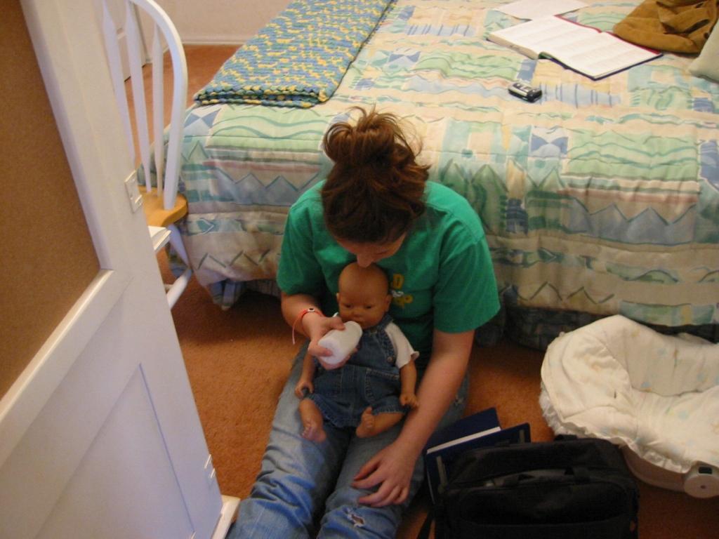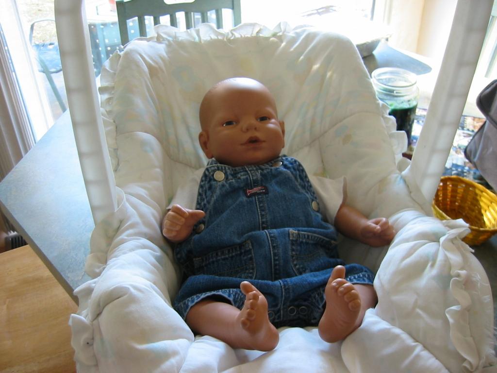 Today Lovely Daughter came home with the newest member of our family--Little Baby Think About It. I just call it "It" for short. This little bundle of wires is programmed to cry and fuss intermittently. There are sensors that detect rocking motions which (allegedly) eventually calm the little robot. There is also a metal key to insert to indicate It has been fed or changed. L.D. has to care for It for three days. Also, It is a stoolie. After 3 days, the teacher reads the data stored in It and L.D. gets a grade based on how well she cared for It. I could hear the thing crying in the middle of the night and L.D. had to get up and take care of it. Pretty realistic. Much better than carrying an egg around as was done in my day.