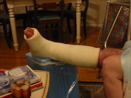 Lovely Wife has undergone her second surgery in as many months to reconstruct her badly broken ankle, knee and foot. Her most recent surgery was January 30 (one day after her birthday) and they placed a couple of plates in her leg to fix the tibia. The surgery was successful and the doctors anticipate a complete recovery. Additional surgeries, while possible, are not expected. She now has a cast on the thing, but cannot put weight on it for three months. Her next appointment is February 22, when they will see how she's doing and possibly fit her for an air boot. Now, I'm not really sure what an air boot is, but it sounds much more comfortable than the fiberglass monstrosity she has now.