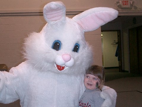 When I was initially asked if I could help with the children's Easter Egg Hunt on Saturday, I thought, "sure, how bad could that be". A couple of hours hiding eggs and herding kids--I can do that. When asked what job I'd like to have, I foolishly said: "just put me where you need me". Little did I know, they needed me in a bunny costume. Who better to tell the REAL story of Easter than the Easter Bunny. And this was no rinky-dink ears and tail type costume. It was full tilt. And Hot! So I did a little skit and spelled out the story of Jesus and how he died for our sins and how he rose from the dead three days later and how all that relates to Easter. That was the minimum mandatory requirement. But then I thought the kids would want to see the Bunster close up. Maybe take a picture. Well, I was right. I was a STAR! After about an hour of mingling and posing I took the suit off. When I came back in my regular clothes all the kids ignored me. Go figure.