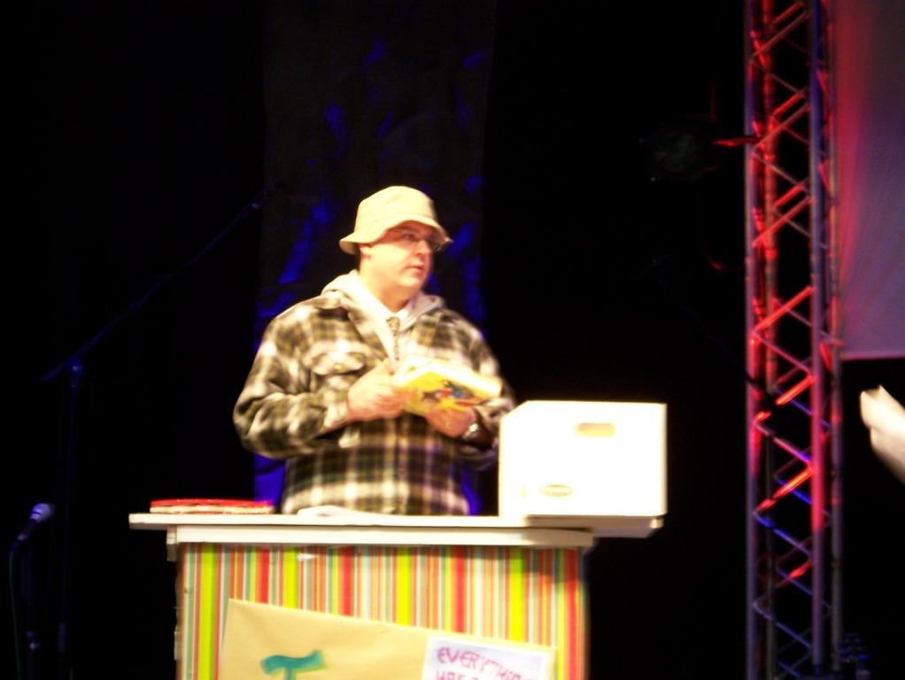 Meanwhile, I had my own performance as a junk shop owner in a skit for the children's worship service