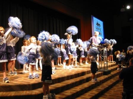 One thing I can say about Upward--it's a first class operation all the way. First, the boys are evaluated, then the teams are arranged so that they are all relatively even. (That's why coaching make such a HUGE difference--kidding) Then, the boys are paired up so that they play against and defend boys of similar ability. Lastly, everyone plays the same amount of time. There is excellent support for coaches, refs and players. It's very well run. And the Award Celebration is no different. There are cheerleaders, songs and a message. Each team is introduced and their team picture shows on the big screen. The kids love it. If you ever get a chance to be involved with Upward, please do.
