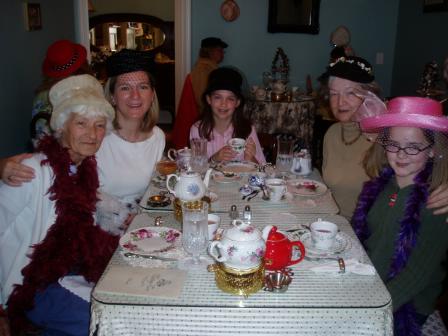 Pip pip, cheerio and all that sort of rubbish. The Ladies are having an elegant and perfectly proper English Tea--and a multigenerational one at that. Grandma had a (reportedly) lovely visit with Li'l Bro 'n Annie. We're lucky that we have such a loving and helpful family that we are able to do such nice things for each other. Many others don't have it so good, so count your lucky stars. Hey, thank God too--he had a hand in all this, you know.