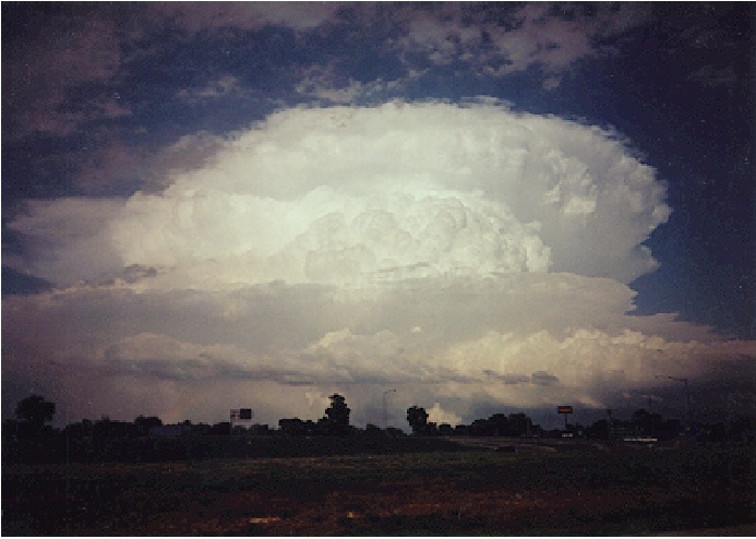 It's, by far, my favorite time of the year. The trees bloom so tremendously. The grass shoots up and turns a vivid green. The meteorology is fantastic this time of year too. Spring storms are very much fun to watch on RADAR and in person. [Here is a picture of a storm I took several years ago (June 12, 1998, to be exact). BoyHead and I decided to go chasing some supercells (basically, rotating thunderstorms) that were in the neighborhood. This particular one dropped a small tornado shortly after this picture]...but I digress. Spring is simply the lovliest time of the year here in the midwest. Nice crisp, cool days--sunny and dry. It's warm enough to go outside, but not so hot that you'll melt. Winter's over. Done. Abruptly kaput. No more frigid days or late night snows to worry about. Wish you all were here.