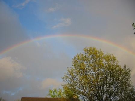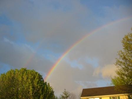 ...bring rainbows. And this was an exceptionally brilliant bow. I could probably see around 150o of arc. At one point, I could even see a secondary bow. Notice how the colors are reversed in the secondary bow.