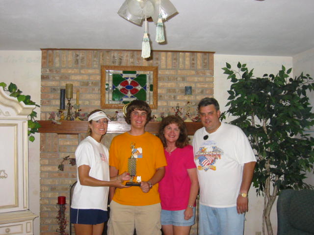 We are so very proud of The BoyHead. He has been playing tennis this summer and he was awarded the Sportsmanship Trophy. This was because of his all-around good natured attitued. He was helpful and kind. Even though his doubles partner skipped out on him he still had a good attitude and helped the other players and coaches. He's such a good kid. I'm very proud (did I already say that?)