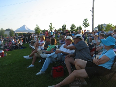 The "Music in the Park" series continued this evening in the park just a short walk from our house. Tonight was the Relation Band. Seems that some of them are related. The played classic rock, Motown, and some progressive country. A very nice early summer evening with mild temperatures and low humidity. We brought some munchems and drinkems...and some neighbors. One of our neighbors even brought some chocolate covered strawberries---Zowie! The evening was capped off with a beautiful fireworks show.