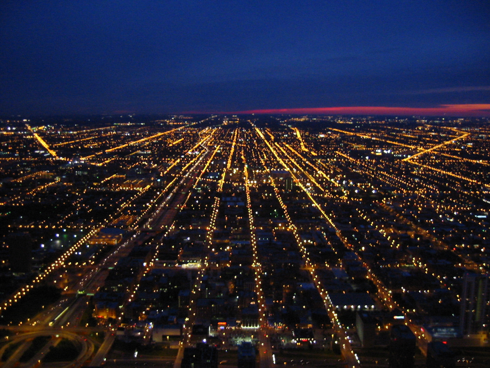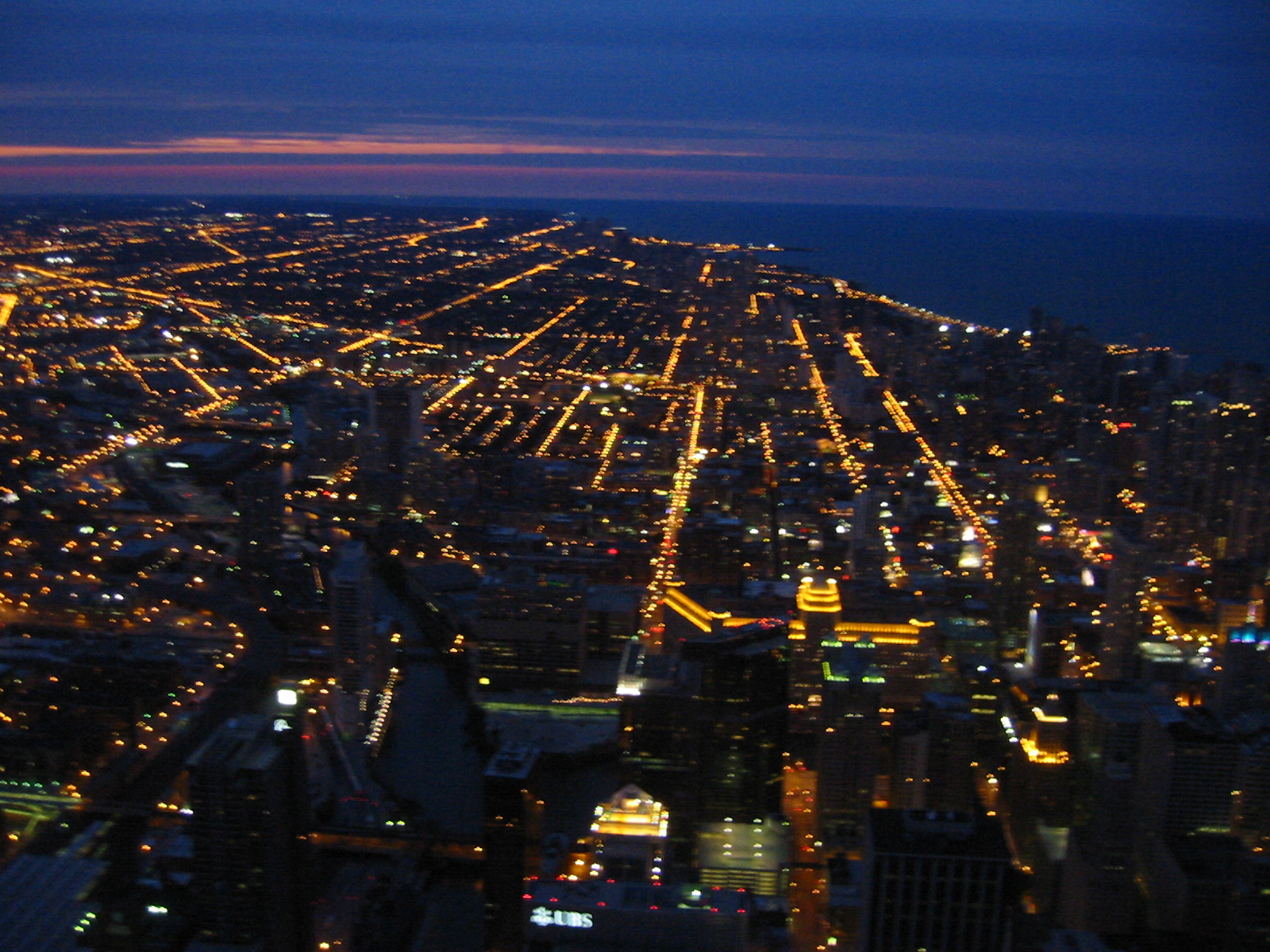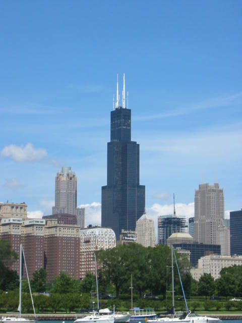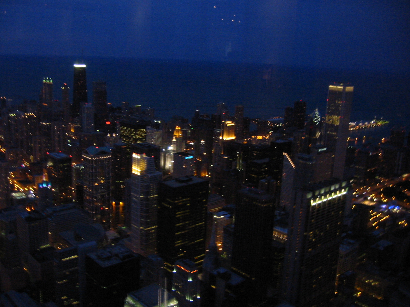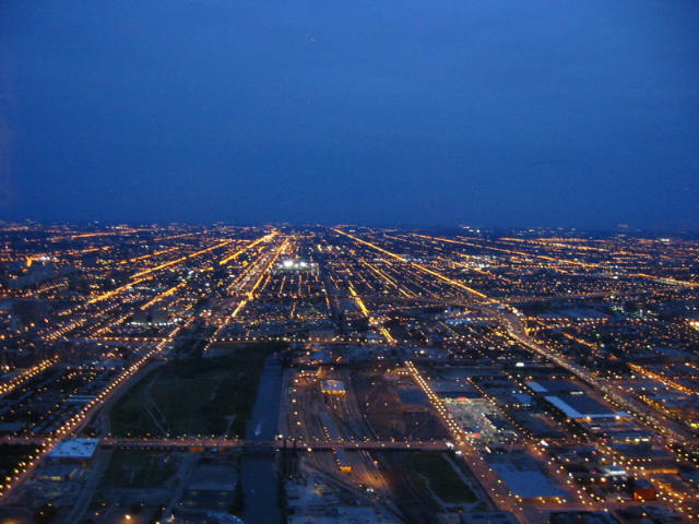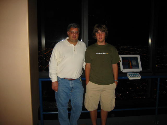 Actually, we had a fabulous time. BoyHead is an excellent driver and he takes instruction quite well. We departed the homestead at 0800 on Saturday. 8 hours on backroads! Enough is enough. Find us an interstate. So we hopped on I-80 and buzzed into town. First we went straight to the lakefront to have a look around. What a sight. Beautiful day. People everywhere. We got slightly lost, but BoyHead maintained composure. Keep drivin' til you know where you are, I say. We arrived at our hotel at 1800 (that's 6:00 p.m. for you civillians). After a quick regrouping and change of clothes we were out on the town. That night I drove; no sense tempting fate. First, we went to the Sears Tower. Hour and a half wait. By the time we got to the top it was already twilight--we got some great pictures though. (I posted a low-resolution one, but if you have a high-speed connection check out here and here and here.