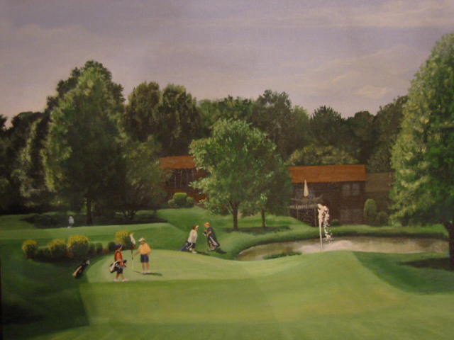 Lovely Wife has been quite busy. Here is her latest effort. She has painted a picture for a friend of hers. The whole family are avid golfers, so she has taken individual photos of them and put them on the links. Very good, I think.