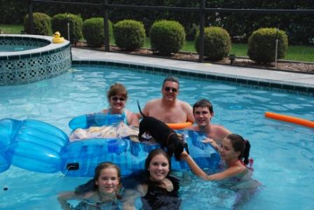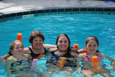 Three days was plenty of time and we were ready to begin the next phase of the vacation--Spring Hill, FL (just north of Tampa). This is where Mom, Aunt and Uncle, and Grandma all live. It was VERY relaxing and good to see all the gang again. We spent one day on the beach at Clearwater, which was just beautiful. I forgot how nice the beach is--and bright! Unfortunately, we had camera issues so you won't get to see any of my Scary Dad Vacation Hair. We spent five days in S.H. and Aunt and Uncle were extraordinarily gracious and hospitable. We had lots of fun just hanging out in the pool.