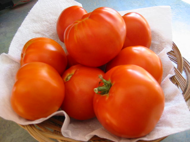 Perhaps they should go on the kitchen page. Lord knows I haven't posted too much on that page as of late. But I just couldn't bear to. These young 'uns almost seem like members of the family to me. Yummy members. Great on sandwiches or, better yet, in the lovely tomato salad. Well, here you have it. The results of my summer's work. I planted, I hoed, I sprayed, I nurtured. What do I get for it? Lovely obedient tomatoes. Actually, I had a touch of the blight this year and didn't feature as many progeny as I otherwise would have. I haven't really had too many problems until this year. So after a bit of research, it seems that I'm doing nearly everything wrong. Hey, if I can do nearly everything wrong, have a bad crop which suffers from multiple diseases and still get over 50 good-looking and exceptional tomatoes out of it then that's not half bad. Your results may vary.