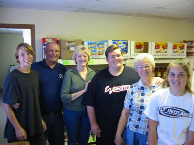 Lovely Daughter and I went to the food pantry to help out with distributing food to the needy. Today LD was promoted to "interviewer". That's where she asks the clients questions to determine exactly what we need to put in their grocery bags. She liked it and, I suspect, she's good at it. The youth group at our church mans the pantry on one Saturday every other month. When it hits during the summer months, sometimes it's slim pickin's. Today there were three kids, but they were great. Helpful, friendly and all around good eggs.
