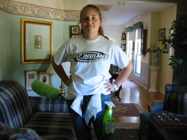 Even after helping out at the pantry all morning, it was back to the grind when we got home. She still hadn't completed here weekly chores yet. Here is LD in "Chore Mode". Don't get in her way or you're likely to get dusted or sprayed.