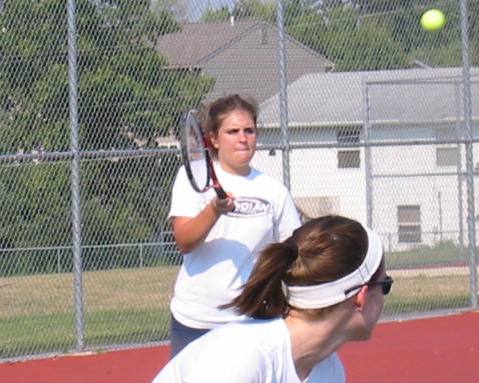 Well, I haven't told you this before, but Lovely Daughter made the Varsity Tennis Team. And for good reason. She's a born competitor. Beneath all the glitz and glamour, she's a fighter...with guns. Today was her first doubles match and her team won easily. We look forward to many more such matches