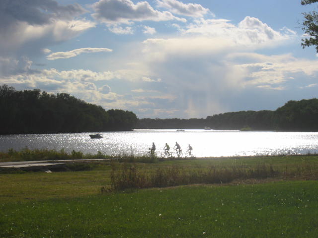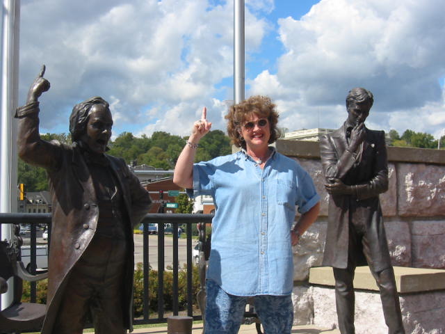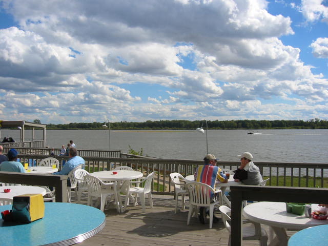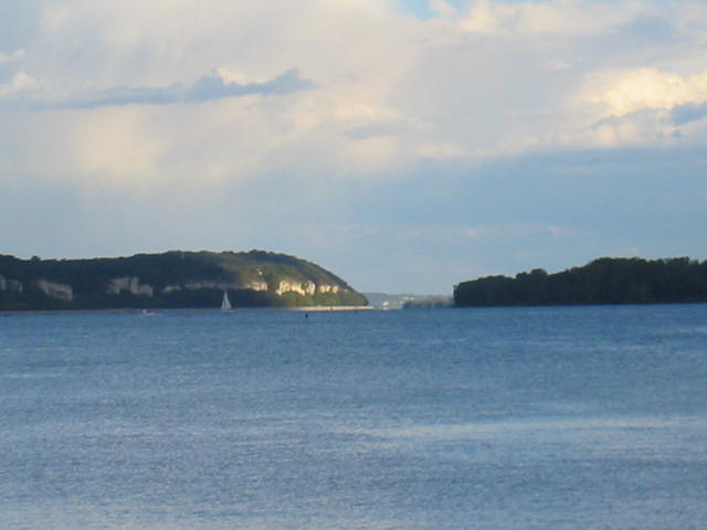 Lovely Wife and I decided to make the most of this lovely early fall day and head up to the Mississippi River Town of Alton, IL. We discovered it was home of the Lincoln-Douglass debates. We also discovered about 127 antique shops. Never before had I seen such a dazzling array of pure crap. Nevertheless, we saw nearly all of it. After seeing most of the castoffs and detritus of humanity, we took a drive up "The Great River Road" to Grafton, IL. The ride was beautiful--wide flowing river to our left; sharp rising bluffs to our right. We enjoyed a nice late lunch along the banks of the River at "The Loading Dock". Grafton is near the point where the Mississippi and the Missouri Rivers join. In fact, the Grafton Ferry goes right through the point where they merge. After enjoying the sights of Grafton, we took the ferry home (which shortened the return trip by half). Needless to say, a lovely time was had by all.