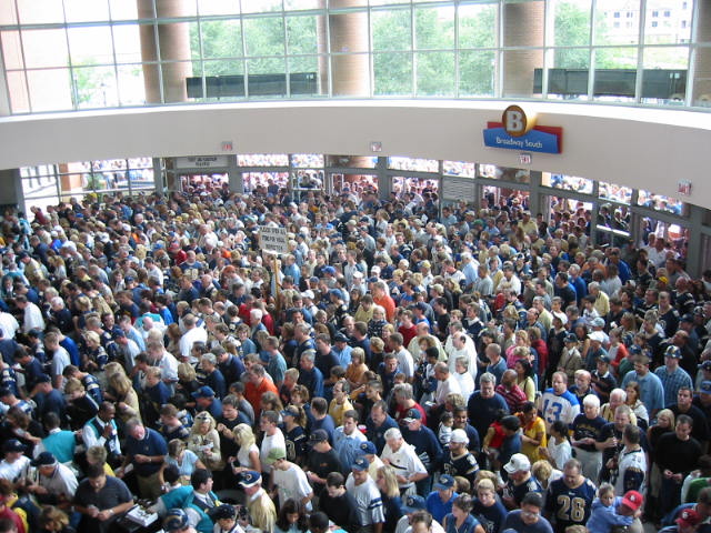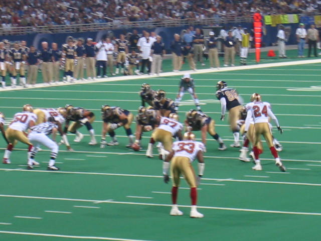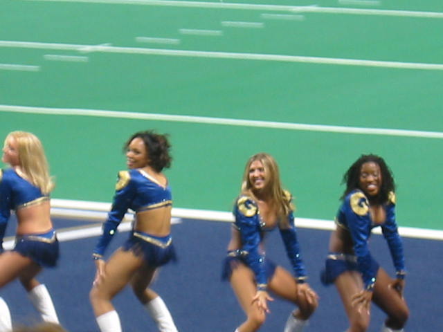 BoyHead and I went to the Rams game today. The Rams were victorious. It was touch and go, especially in the first half. The mighty, victorious Rams were able to put their mistakes behind them and regroup at halftime. Hats off the to mighty Rams. On to week 3. Next on the schedule is Rams @ Seahawks, Sunday September 21 @3:05 p.m. Go Rams!