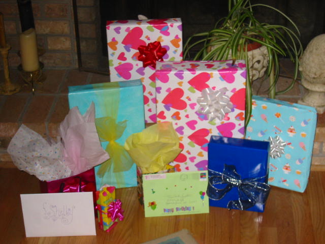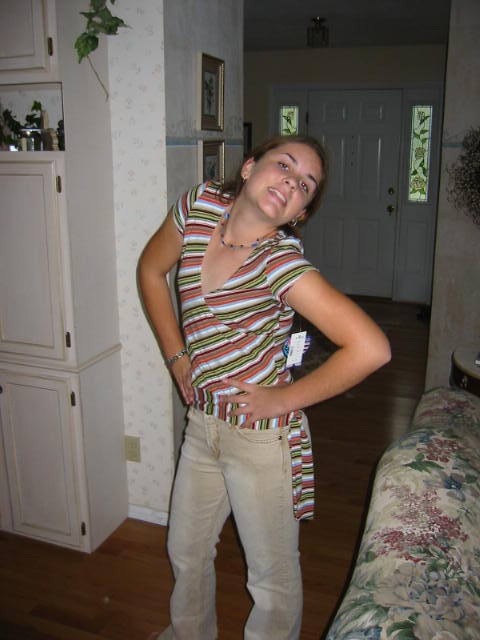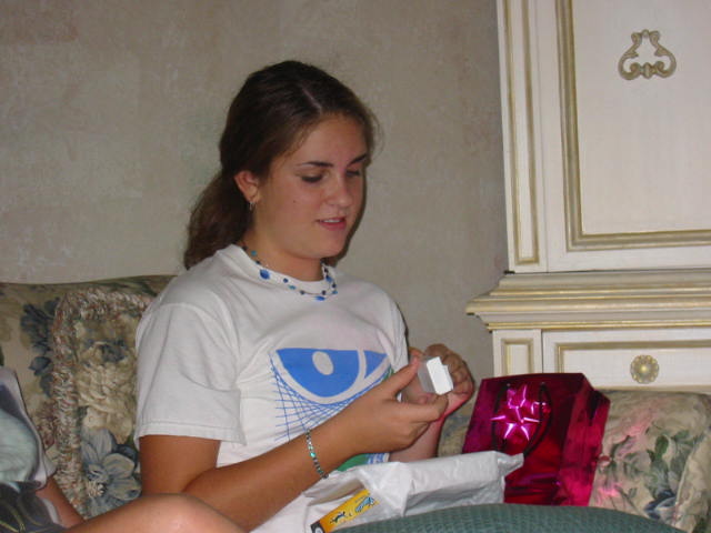 Well, the ol'e gal has finally done it. She has hung around long enough to be called a teenager. Today is LD's 13th Birthday!! We felt bad because Kristie overslept (that's how great these kids are. They just get up, get ready and go.) and I forgot my traditional "before the bus comes Birthday call". So we didn't actually wish her a happy birthday until she came home. After school, she opened all her presents (just from family--she'll have the party with all the firends in a couple of weeks. Yeah, gotta stretch it out.). She got many clothes (fashion show to follow), mucho mula, bracelet charms, some jewelry, perfume--mostly girly stuff. Oh yeah, she also got "The Sims Vacation" computer game. Actually it's not so much a game as a way of life, but I digress. For a look at the Birthday Dinner, be sure to check out The Kitchen. Enjoy the fashion show:
