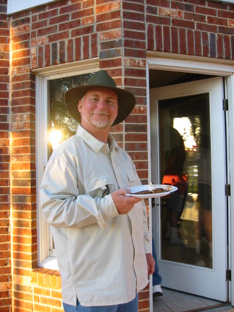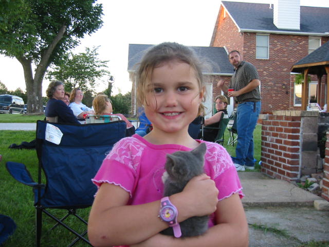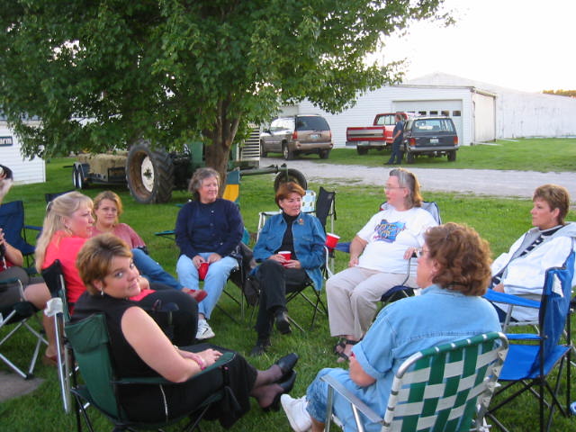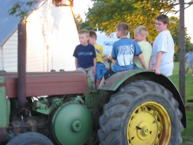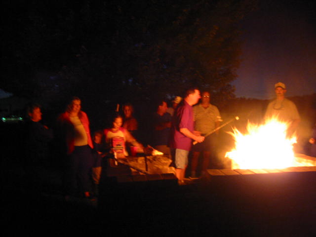 Kristie and I went to our Sunday School party last night. A great time was had by all. As with most Southern Baptist functions, food was plentiful and delicious. "Gentleman Farmer" and his kind wife were our gracious hosts. The have a wonderful spread "out in the country". After dinner we played horseshoes, some went on a hayride, women sat around gabbing. The little ones had a great time playing in the yard and the barn--they have 11 cats. As it got dark, they lit a bonfire and cooked smores.
