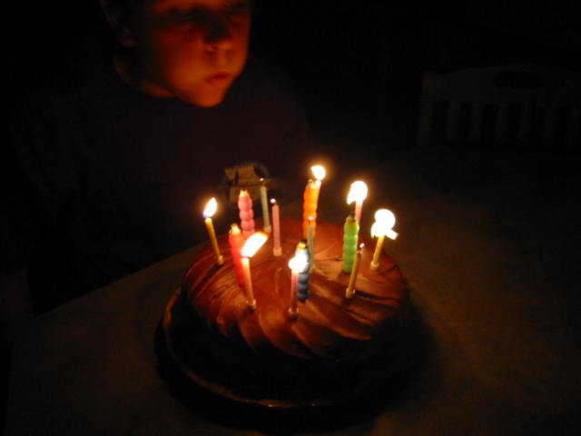 It was a grand event which began with an impromptu fireworks display--actually L.D. found some giant sparklers left over from the 4th. First up on the agenda was pizza and snacks. Can't begin a proper party without the proper fuel. Next, it was off to Lazer Core for some laser tag and a few arcade games. After successfully defending planet from, well...each other, we headed back home to the treasure hunt. Lovely Wife had carefully crafted a story (hey, it even rhymed) with clues scattered about the neighborhood. Great fun--except for the cheaters. After some additional hijinks which included renditions of "Camp Granada" and "Madeline Katalina Lupestina....whatever" which were totally hilarious, it was time for presents and cake. By this time it was nearly midnight and Sir was fading fast, so I didn't manage to get any pics of the cake. Sunday morning, though, I was rarin' to go and so I concocted a wonderful breakfast: pancakes, sausage and onions, cheese eggs, hash browns and fruit. Woof, time for a nap. Oh yeah, a good time was had by all.