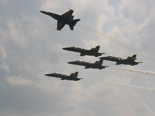 Today it was the St. Louis Fair and Air Show. Featured flyers were the Navy's Blue Angels. I've been in the Air Force and currently work at an airport and, yet, I NEVER tire of seeing this stuff. It really astounds me. The precision flying. The C-130 on JATO. The acrobatics. The noise. The speed. I love it all.