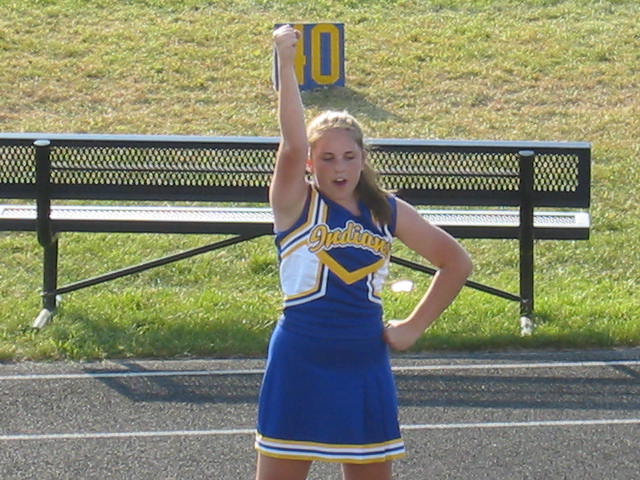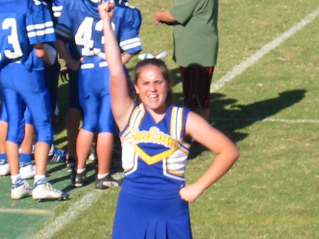 Second game of the freshman football season. The mighty Indians are on a roll at 2-0 after this game. Lovely Daughter continues to be the standout cheerleader of the squad (everybody I know thinks so).