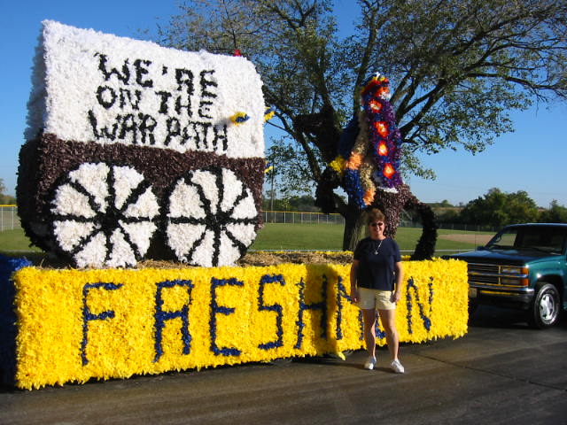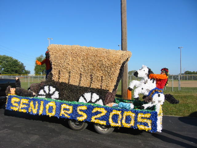 As you can see, it was a beautiful day. The weather has been exquisite lately. High temperatures in the low 80's and lows in the upper 50's. Bright, crisp blue sky. The kids did a great job with the floats. LD and the rest of the cheerleaders walked in the parade and threw out candy. Personally, I was hoping for bacon and eggs, but I suppose that would have made a mess.