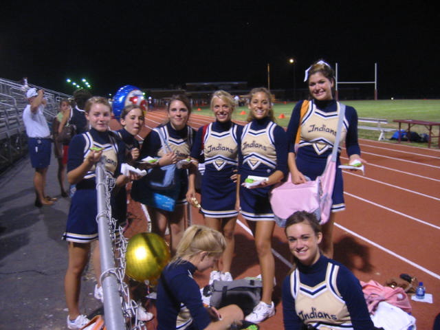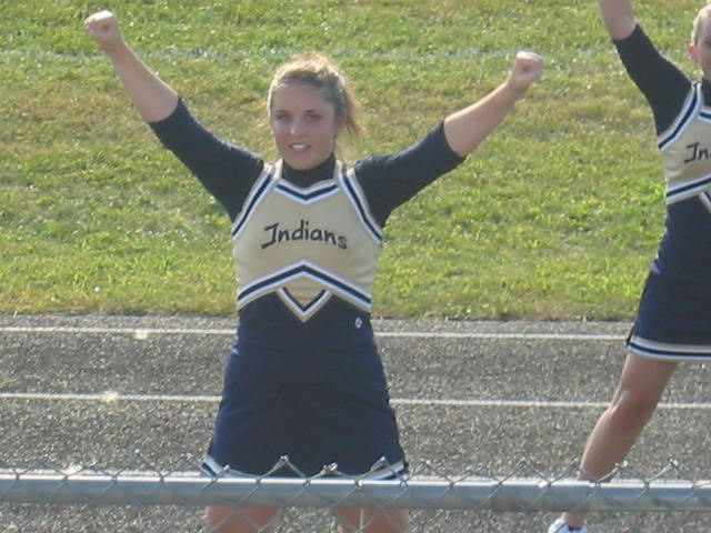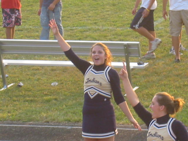 Yes, we love our Indians deep down in our hearts. How deep? Deep, deep, down, down. Deep down in our hearts. Yes, football cheerleading season is now in full swing and Lovely Daughter is the star of the squad. It's a lot of fun for the girls and the parents all enjoy it too. I was even able to get a fairly good video clip of the girls in action at the halftime show. Enjoy!