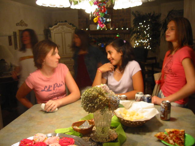 Today we also had LD's birthday party. It was quite the festive event. Even though we did not have any outdoor events planned, I strung up the parrot lights in the backyard. It's tradition. First, we had pizza and junk food. After that it was off to the bowling alley. I don't think anyone even broke 100. Sad. Very sad. While the girls bowled, Lovely Wife and I poured through birthday girl's Teen People magazines. Actually, we were planning on having a scavenger hunt but we ended up scrapping that plan. Instead, we had a trivia contest. We gleaned our questions from the pages of the teen mags. I made two very sad discoveries. One, I don't know who any of these celebrities are. I'm no longer hep. Secondly, and far more seriously, I discovered that L.D. had actually completed all the Teen People crossword puzzles. The young lass doesn't have time to read her book for English, but she has time to do the crosswords? Anyway, we came up with quite a few questions. I added some historical and academic questions to even the playing field for the culturally ignorant. You can find the questions here. When we returned from bowling, we opened presents and had cake. Don't you just love those DQ ice cream cakes? I sure do. Then we had the trivia challenge. Of course, by then it was after midnight and I had to bail out. But I heard the next day that a good time was had by all.