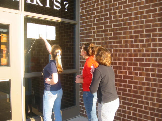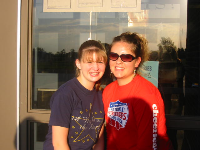 It's not like it used to be in the Olden Days. Just because you're a football cheerleader doesn't mean you're in for the whole year. Nowadays, cheerleaders must try out for each sport. Today was the day to try out for basketball season. I remember when I was a young lad, the cheerleaders would try out in front of the whole school and everyone would vote. Now, in more humane and modern times, they try out in front of a panel of cheerleading experts (teachers, I think) and don't have to undergo the humiliation of impressing the entire student body. A better method, I'd say. Anyway, L.D. and her friend both made the cut so we will have many more cheerleading outings to look forward to.