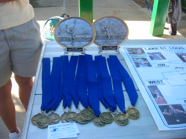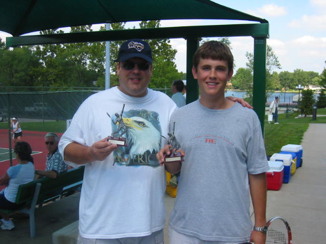 BoyHead and I had our Day in the Sun. We competed in our first Men's Doubles tournament. We were the only father and son team and we did quite well and were even awarded these nice trophies. If you don't believe me, then go here It's my second tournament in as many weeks and I am motivated to continue playing more often. I've been attending (when I can) the Tuesday and Thursday evening Men's open play. It's been quite invigorating. The local Tennis Association even has a website.