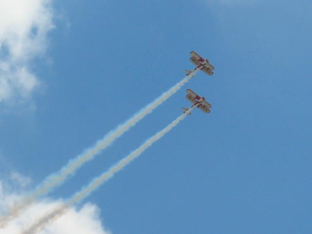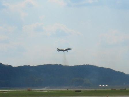 ...and we have front-row seats. A good friend of mine works at Executive Beechcraft, so he invites the gang to watch from the E.B. hangar. Sometimes, you can see the pilot in the cockpit as they fly by. There were aerial acrobatics, strafing runs by A-10 Warthogs, hovering AV-8 Harriers, there was even a P-51 Mustang. Great show and a lot of fun and...a good time was had by all.