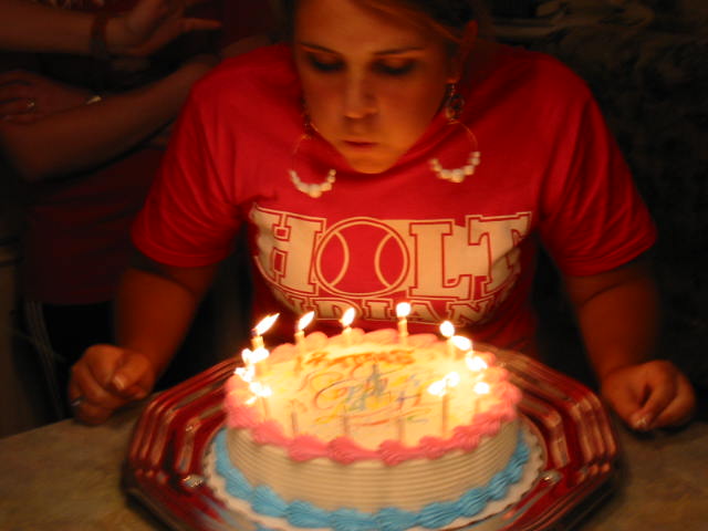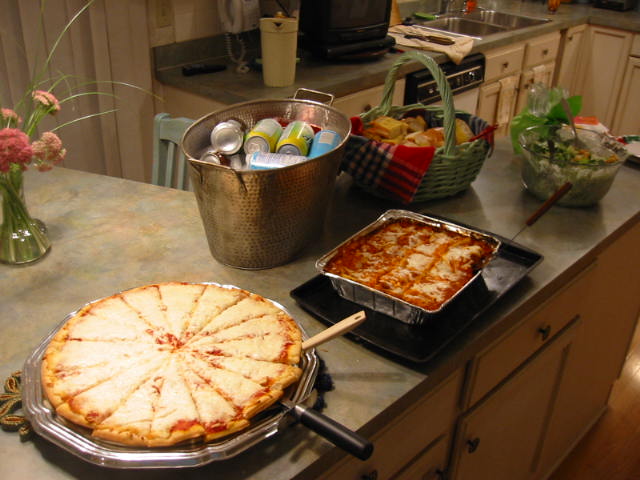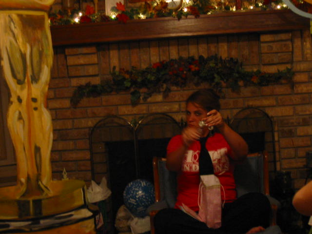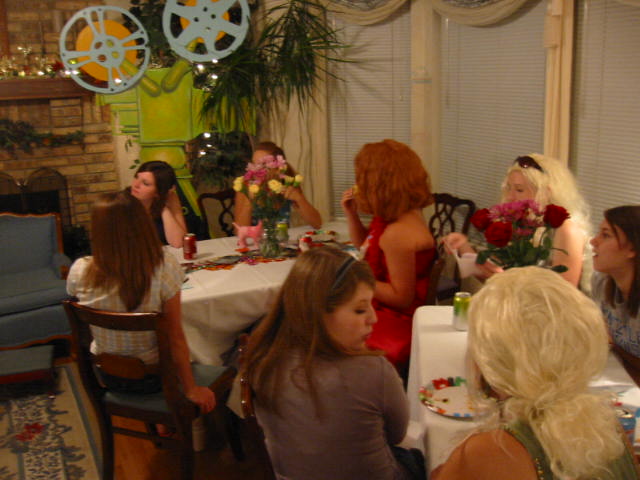 ...Lovely Wife had this great idea to have everyone show up as a celebrity and prepare a celebrity tribute to L.D., then they would try to guess who the celebrity was. We had Hillary Duff, Paris Hilton, Phoebe from Friends singing "Smelly Cat" and many others. Everyone had a great story and weaved L.D. into their backgrounds. They also all pitched in to dress the L.D. Then each girl gave Lovely Daughter a "real" tribute and everyone had to guess who wrote what. It was so nice to hear all her friends say such good things about her. One nearly brought tears to my eyes. We ate lasagna, pizza, Ceasar salad and had ice cream cake.