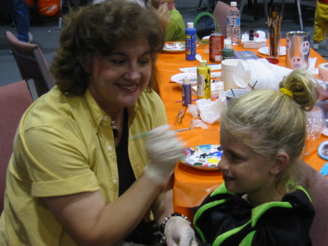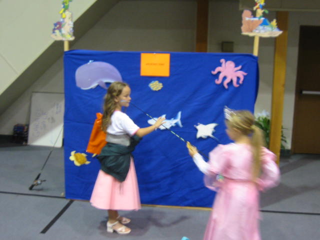 Lovely wife and I gave up our tickets to the symphony to attend to a higher calling: we volunteered at the annual Fall Festival at our church. Kids in costumes, cotton candy, clowns, games, hot dogs, cake walk, music; what could be better. Lovely Wife manned (womanned?) the face painting booth. Being the natural fisherman that I am, I manned the Mystery Fishing Booth (at least there was no bait involved).