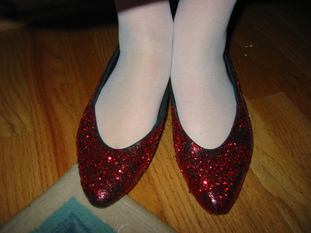 BoyHead really just wanted to Trick or Treat but not wear a costume. I believe he ended up wearing an eye patch and saying he was a Pirate. Ahhrrrrr. Then it was off to the Homies, not to be seen for the rest of the evening. Lovely Daughter was still into it though. She went as Dorothy from The Wizard of Oz. Lovely Wife made an excellent costume and LD made the "Ruby Red Slippers".