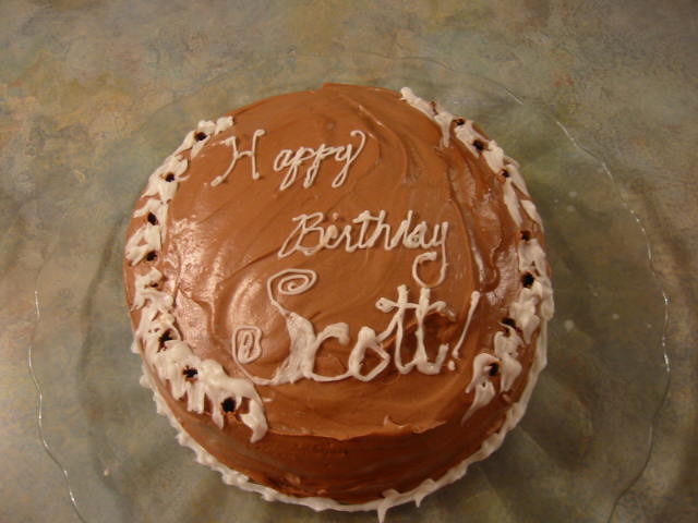 We had the traditional Birthday Dinner. I made BoyHead's favorite: big monster burgers on the grill, Bush's (no, not any other brand thankyouverymuch) Baked Beans, Onion Rings (that was for me really), and some vegetable--I forget. We sang "Happy Birthday" and BoyHead made a wish and blew out his candles. I don't think his wish came true yet though--he's still here.