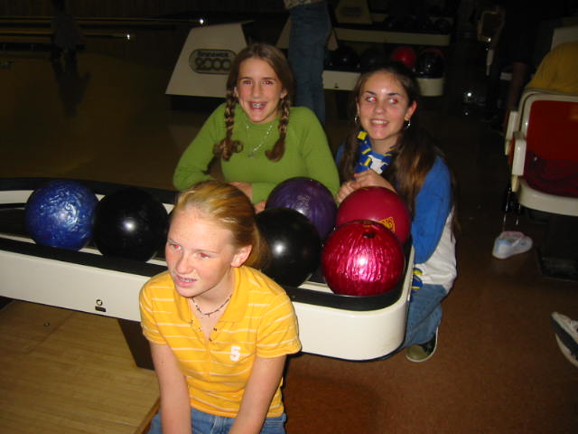 Lovely Daughter had her LONG AWAITED BIRTHDAY PARTY last night and today. The Agenda: First, pizza, lasagna, salad. Man, teenagers can EAT! After dinner was Bunko. If you don't know what Bunko is, I can't explain it other than to say it's a game involving dice, women, and shouting. Oh yeah, there's a little bell too. The winners (and losers) receive prizes. Well, we had round 1 of Bunko and then it was off to the bowling alley for some good old fashioned "Crazy Bowl" (in crazy bowl, for each frame you bowl in an unorthodox manner such as backwards, left handed or after doing three quick spins--my personal favorite).