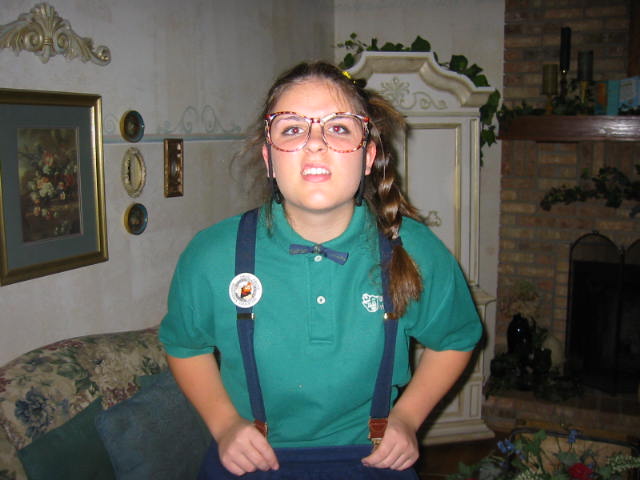 A chill is in the air, the days are shortening rapidly and the leaves have mostly turned and are littering my yard. It's the peak of fall. We're beginning the long slow slide into winter. I called my "wood guy" and he will deliver the seasoned hardwood tomorrow during halftime. The house is all decorated with pumpkins and scarecrows. I love this time of year. There's football. Pumpkin pie. Fires in the fireplace. And children dressing up in their costumes. Lovely Wife (just a child at heart) went as a scarecrow to her halloween Bunko party. Lovely Daughter went to her soiree as a Nerd. Most of what nerdy daughter wore belonged to L.W. and I. I'm not sure that I like what that infers.